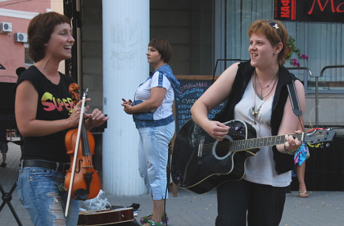 Анна Чуска (гитара) и Катерина Мещерякова (скрипка) уже знакомы тем, кто побывал на втором фестивале. Знают их и многие горожане, кто имеет обыкновение гулять по кремлю — девушки часто играют на аллеях кремлевского сквера. Стаж уличных выступлений Анны насчитывает уже 13 лет. В репертуаре девушек — тоже старый добрый рок-н-ролл: «Машина времени», «Воскресенье», «Чайф», «Адо» и другие группы. На этот раз к девушкам присоединится барабанщик Игорь Щеколдин.