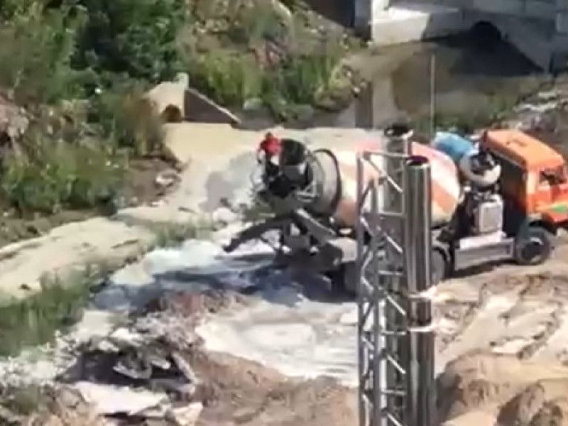 Инцидент случился в микрорайоне Кальное. Там полным ходом идет стройка жилого комплекса «Маргелов». На кадрах видно, как один из рабочих сливает цемент в ручей.