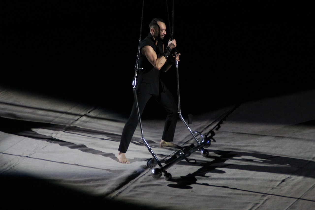 В какой-то момент артисты выбираются на поверхность «колеса» и начинают прыгать через скакалку и ходить с завязанными глазами. На протяжении всего времени зрителю сложно оторваться от происходящего. Участник номера акробат Евгений Петров поделился, что всегда перед премьерой шоу в новом городе испытывает волнение. По его словам, выступления без страховки требуют особой отработки.