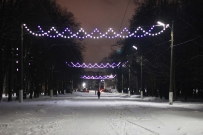 Еще один каток в скором времени появится в Лесопарке, а пока его впервые украсили новогодней иллюминацией. Гирлянды установили от Торгового городка до путепровода Северной окружной.