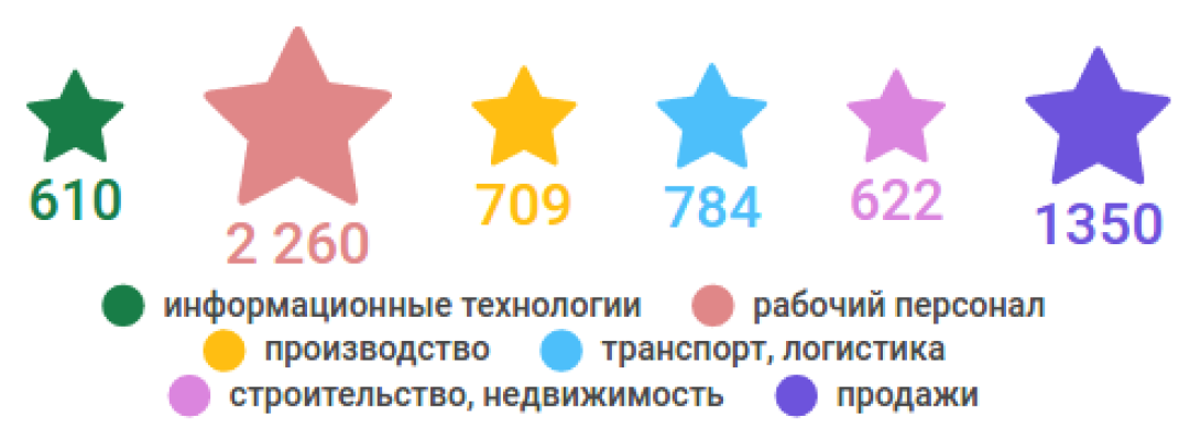 От общих цифр перейдем к зарплатам, которые работодатели Рязани предлагают соискателям: