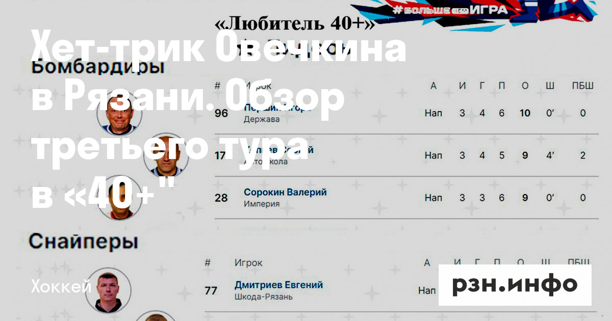 Снайперские подвиги Овечкина, отец выигрывает у сына, почему Игорь Першин стал лучшим бомбардиром и как дебютанты оказались в лидерах — все это в обзоре третьего тура дивизиона «Любитель 40 +".