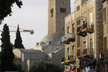Деловой центр города появился в те времена, когда Иерусалим находился под управлением Британии (1918-1947), поэтому если бы не пальмы, можно было бы вообразить себя в Лондоне. С тех же пор над другими зданиями возвышается высокая башня Ассоциации христианской молодежи (YMCA), которую видно отовсюду и которая вместе с гостиницей «Царь Давид» отмечает один из выходов к Яффским ворота Старого города.