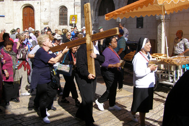 Сегодня практически вдоль всего Скорбного пути шумит восточный базар — это территория мусульманского квартала. Иногда видно, как кто-то из христиан несет по улице деревянный крест, подражая Иисусу Христу.