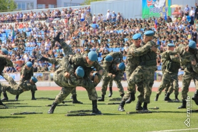 За три дня до этого над городом поднялись воздушные шары, которые пронесли стометровую георгиевскую ленту и флаг ВДВ. Полет воздухоплаватели посвятили столетнему юбилею училища ВДВ. 2 августа на стадионе Спартак прошел праздник «Рязань — столица ВДВ». На нем горожане увидели показательные выступления десантников и выставку военной техники. На празднике губернатор Николай Любимов передал начальнику училища Алексею Рагозину флаг десантных войск, который побывал в космосе.