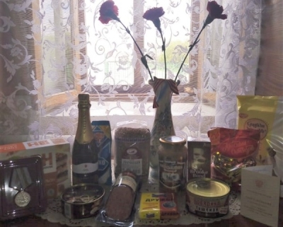 Самый типичный продовольственный набор для ветеранов обычно стоит около 500 рублей. В него входит несколько пачек крупы, чай, печенье и тушенка. Однако в Скопине решили добавить в продуктовый набор бутылку водки, а еще консервы, зефир, вафли, шоколад, черный чай и кофе.