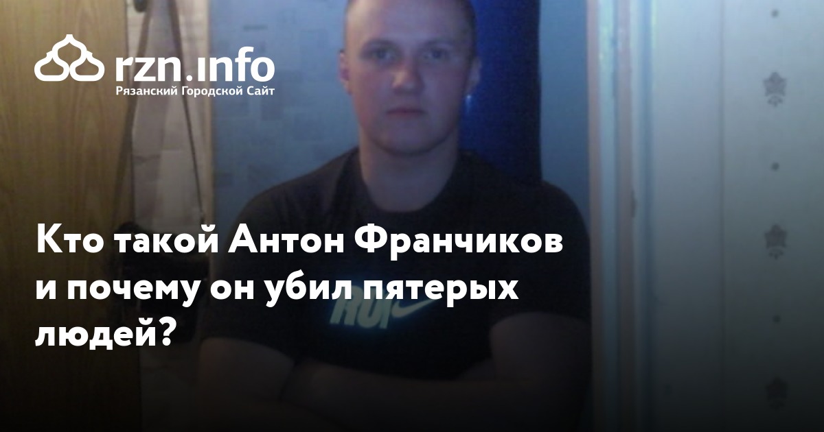 Вечером в субботу, 4 апреля, Рязанскую область потрясла трагедия: в поселке Елатьма Касимовского района мужчина расстрелял из карабина «Вепрь» четверых молодых людей: 31-летнего Максима Ухова, 24-летнего Виктора Капитанова, 26-летнего Илью Кондракова, и супругов Евгения и Кристину Табуновых 24 и 22 лет. Девушка была беременна. Как заявили позже в следственном комитете, 31-летнему Антону Франчикову помешал шум под его окнами: якобы компания громко разговаривала на улице, из-за чего началась ссора.