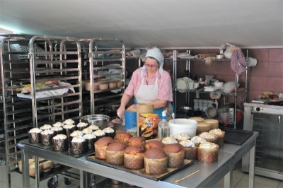 К празднику Пасхи печь здесь занята куличами и кексами. Все готовится строго по рецепту, секрет которого журналисту открывать отказались.