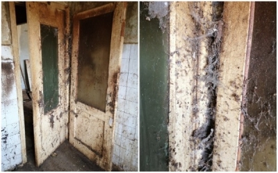 Оттуда в квартиру потянулись тараканы, клопы и крысы. В коридоре со стен обвалилась штукатурка, обнажив кирпичную кладку. Обои сохранились лишь в нескольких местах. Рисунок на них скрылся под экскрементами насекомых и гирляндами из паутины.
