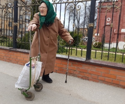 На подходе к собору Казанского монастыря я увидел бабулю с тележкой, которая явно нарушала режим самоизоляции. Старушка крестилась и кланялась в сторону храма, поэтому я решил у нее уточнить, работает ли церковь. Однако она меня опередила.
