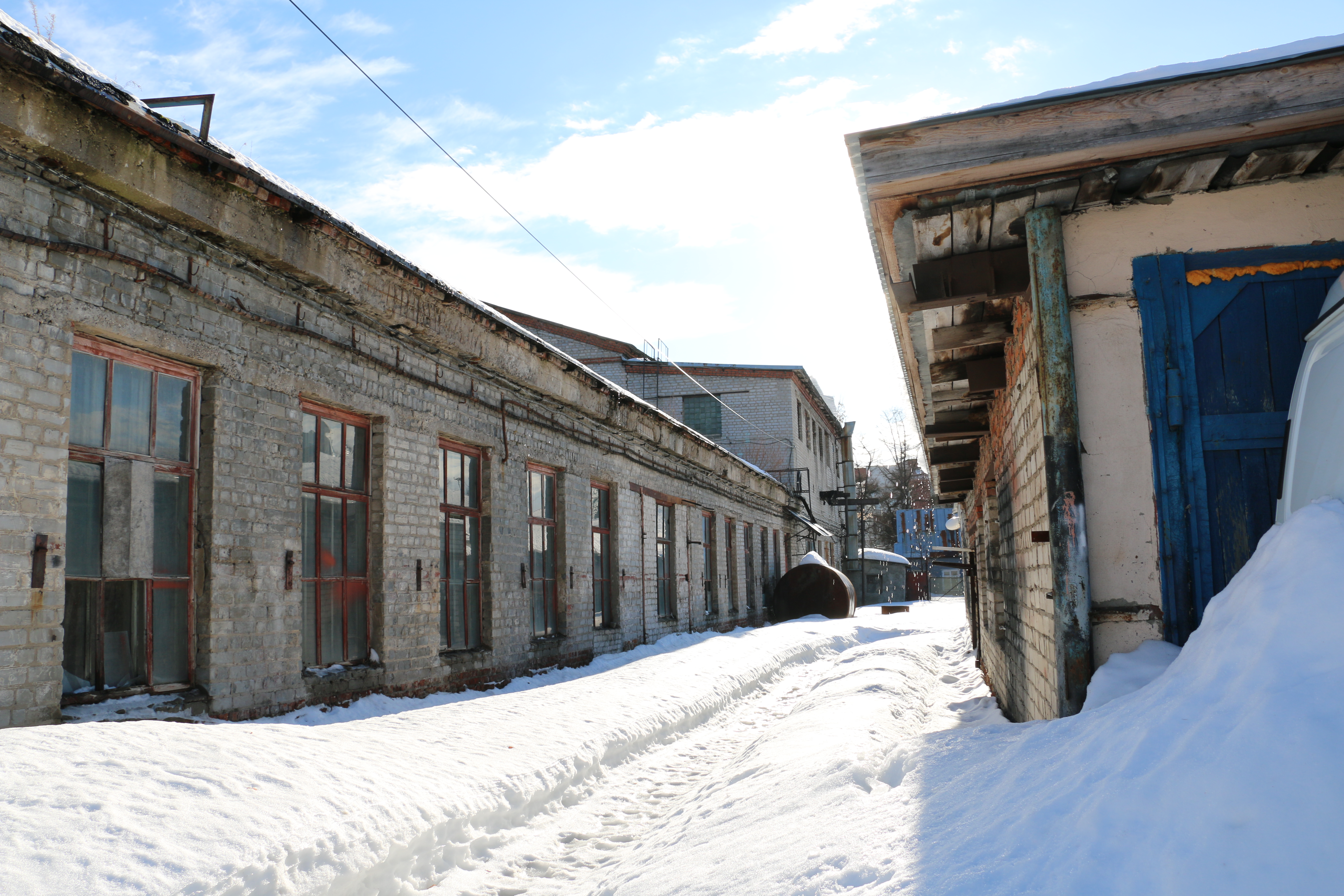 Если выйти из Рязанского кремля, пройти по мосту через реку Трубеж, повернуть направо и сделать буквально несколько шагов вдоль набережной, взору откроется картина разрухи и запустения. Ветшающие кирпичные строения, фасады которых затянуты прорванной клеенкой с бутафорскими арочными окнами, со двора — обшарпанные стены, мусорные контейнеры и машины, погребенные под снежными завалами.