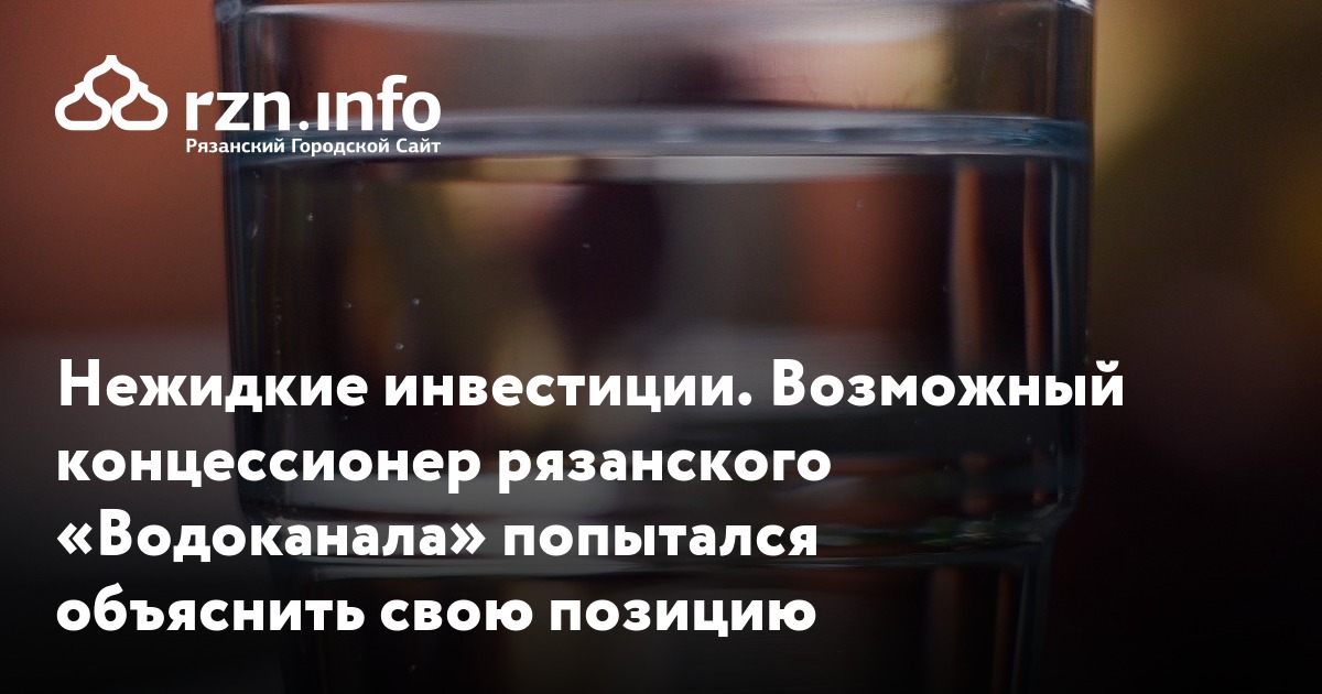 Рязанский «Водоканал» — крупное и стратегически важное предприятие, где трудится более тысячи человек. От его слаженной работы зависит бесперебойное снабжение областной столицы качественной водой и безаварийное функционирование канализационных сетей. Частный капитал собирался взять «Водоканал» в концессию еще в 2015 году. Тогда интерес к этому муниципальному предприятию проявлял «Росводоканал», входящий в небезызвестную «Альфа групп» Михаила Фридмана, Германа Хана и Алексея Кузьмичева.