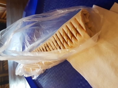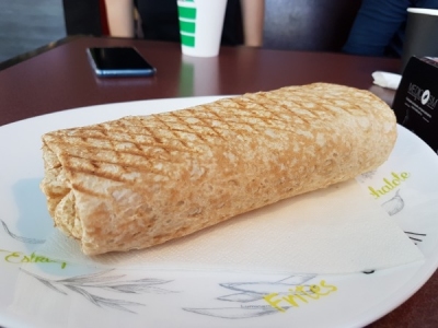 По размерам шаурма была больше обычной, ее содержимое обернули в плотный лаваш одним слоем, так как по толщине он походил скорее на блин.