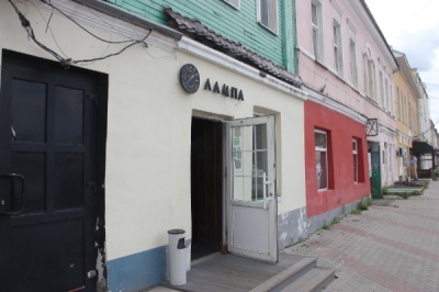 Заведение расположилось в подвале напротив торговых рядов на улице Краснорядской. Внутри оказалось пусто, но не скучно. Атмосфера заведения напоминала молодежные бары: в колонках играла современная музыка, на столе стоял старенький телевизор с дисками и видеомагнитофоном, рядом с высокими столами вытягивались барные стулья.