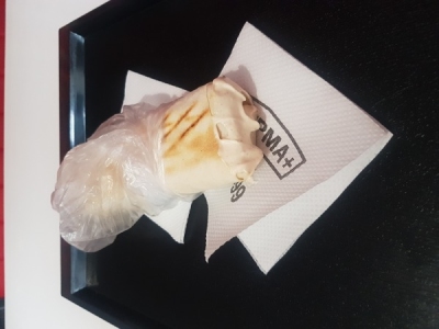 Уже через семь минут передо мной на тарелке с салфеткой лежала шаурма. Кассир пожелал приятного аппетита и указал на черные виниловые перчатки, которые позволят оставить руки чистыми.
