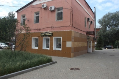 На окне «Тарелки» красовалась философская надпись «Шаверма или Шаурма — неважно, если есть она».