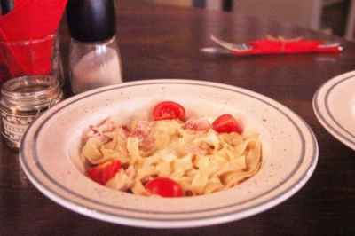 Когда я добрался до пасты, она успела немного обветриться. Перемешав и попробовав на вкус макароны, я забыл обо всех недостатках и с аппетитом уничтожил большую порцию карбонары, оставив пустеющую тарелку.