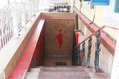 В среду я решил пойти в студию-бар The Peashem. Признаюсь, когда начал спускаться вниз, заведение меня заинтересовало. Лестница, ведущая в подвал, была выдержана к красном стиле, а на стенах выгравированы необычные рисунки.