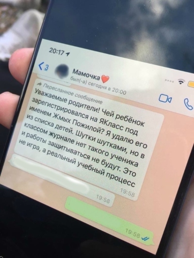 Теперь же учителя, оставшись один на один с электронным дневником и журналом, стали придумывать, как обучать детей. Большая часть педагогов в первый день «дистанционки» прислали ученикам только задания без объяснения тем, некоторые прикрепили ссылки на видеоуроки с общероссийских ресурсов, лишь единицы пообещали встречаться с детьми онлайн в сервисе Zoom и отправили детей регистрироваться на платформах типа «ЯКласс». Старшеклассники воспользовались царящей неразберихой среди учителей и растерянностью родителей. Так, в классных чатах с педагогами, куда планировалось присылать задания, появились ученики под шутливами именами. Учителя схватились за голову: надо было вычислить своих детей среди ников типа «Жмых Пожилой» и «Пельмень».
