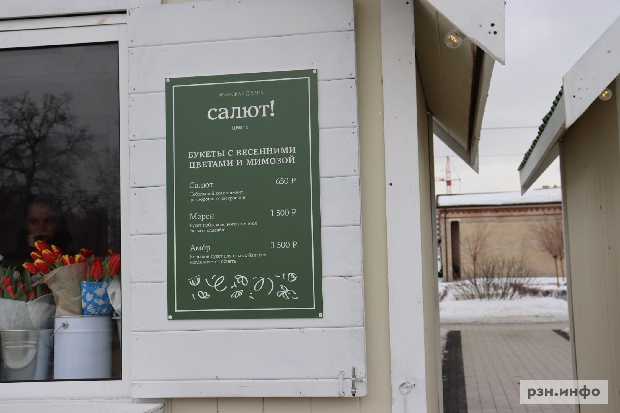 Журналист посетила три точки, чтобы сравнить стоимость букетов. Внутри Торгового городка цены оказались самыми высокими. Стоимость небольшого букета мимозы составила 650 рублей.