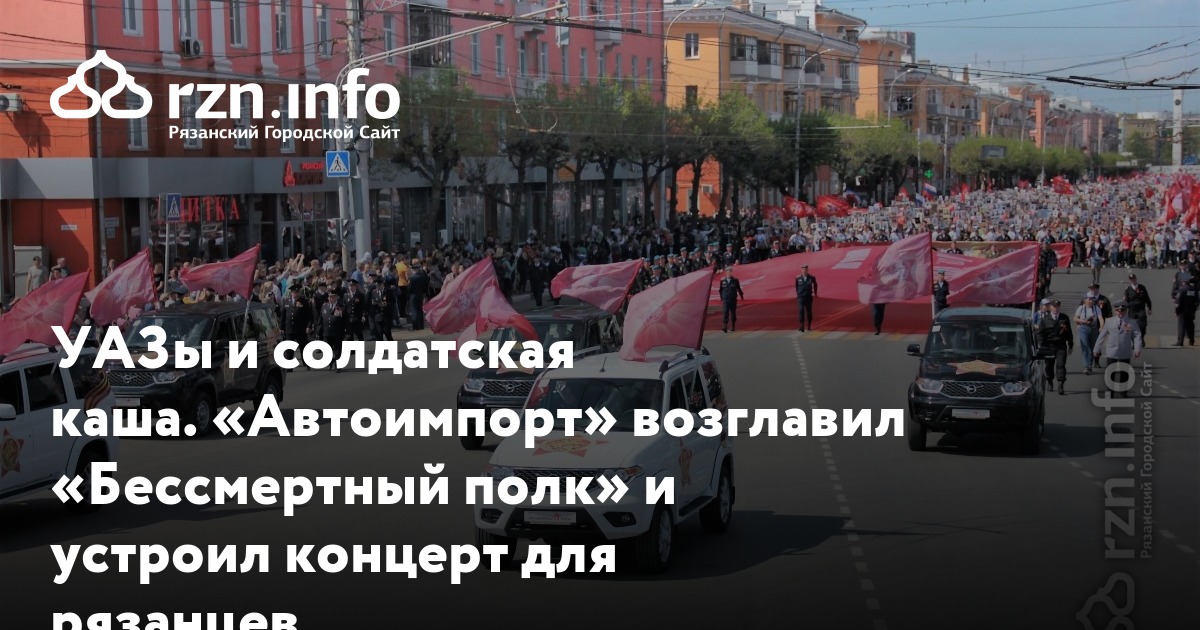 Колонну «Бессмертного полка» в Рязани снова возглавили автомобили. В среду, 9 мая, по Первомайскому проспекту проехали шесть внедорожников «УАЗ Патриот», предоставленные ГК «Автоимпорт». Машины украсили эмблемами акции и георгиевскими лентами.