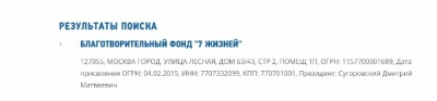 Учредителем фонда «7 жизней» числится некто Дмитрий Сугоровский. Найти информацию о нем и связаться не удалось.