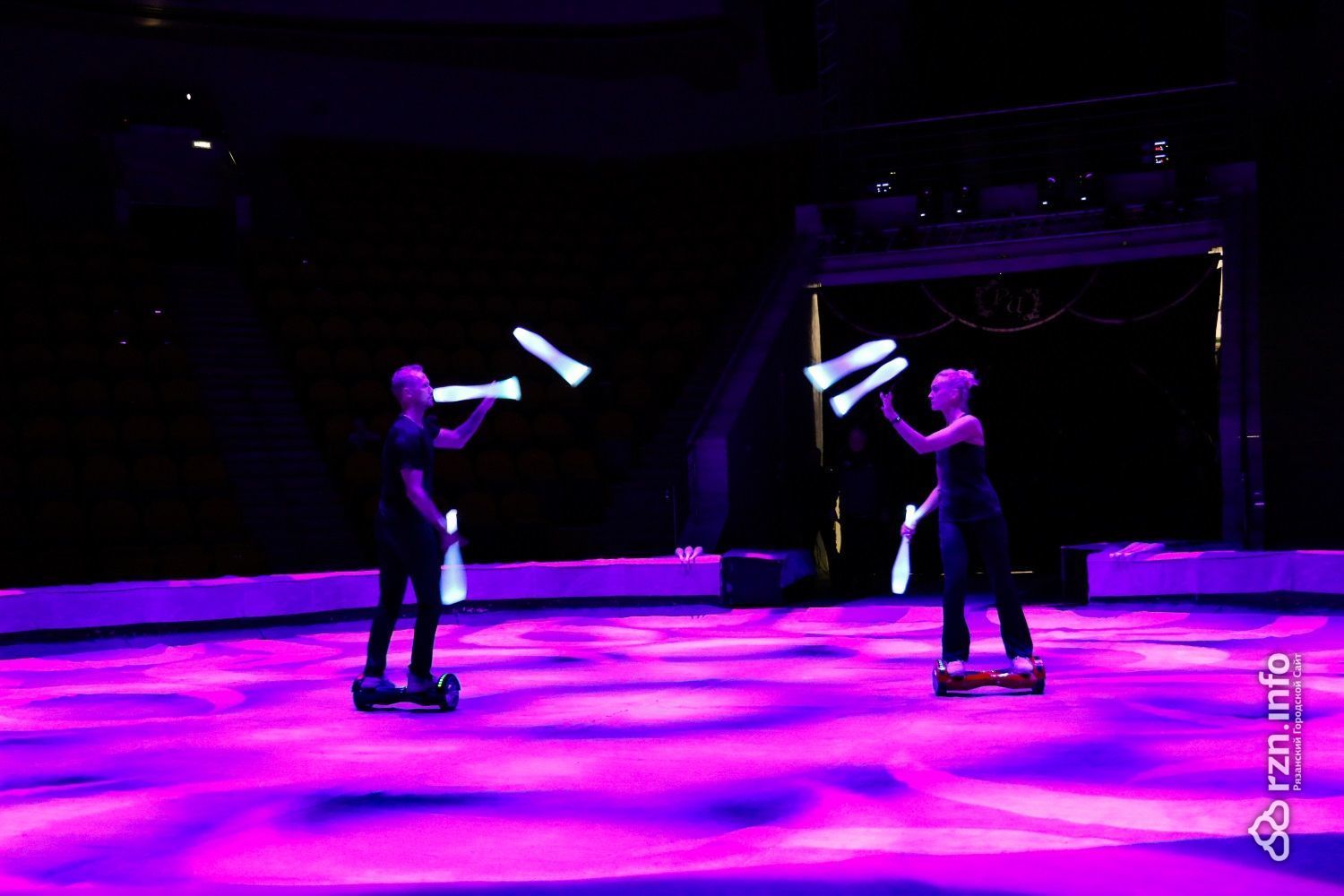 Жонглеры Дергачевы покажут невероятную ловкость — они будут жонглировать, катаясь при этом на гироскутерах. Динамичный номер со светящимися в темноте кеглями смотрится очень эффектно.