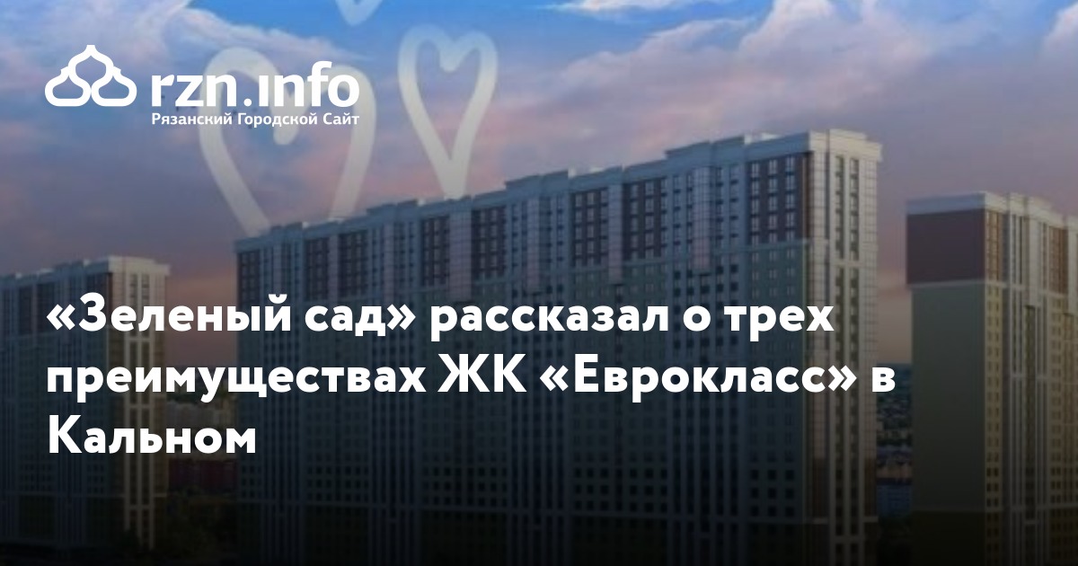 ОБРАТИТЕ ВНИМАНИЕ: ГК «Зеленый сад» продолжит делиться еще более подробной информацией об несомненных и даже уникальных плюсах проживания в комфортных, безопасных и экологичных квартирах в домах жилого квартала «Еврокласс». Следите за актуальными новостями о жилом квартале в сети — на официальном сайте застройщика и популярных рязанских сайтах.