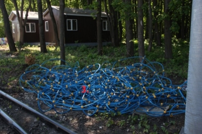 Канатная конструкция (3) стоимостью 800 тысяч располагается в Лесопарке, но пока на складе. Ее установили в конце года, но перед новым годом решили демонтировать. Теперь ее намерены установить на пляже Старицы в Солотче. Планируется, что площадка появится там 1 июня.