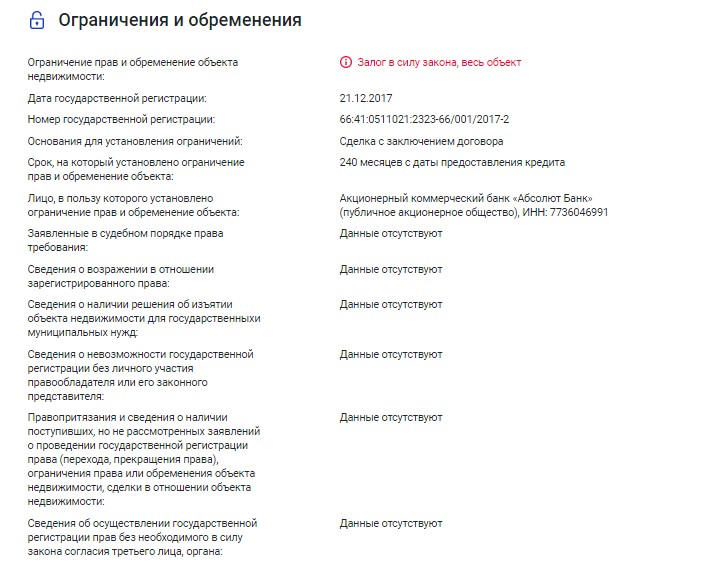 Блок об ограничениях и обременениях в выписке из ЕГРН