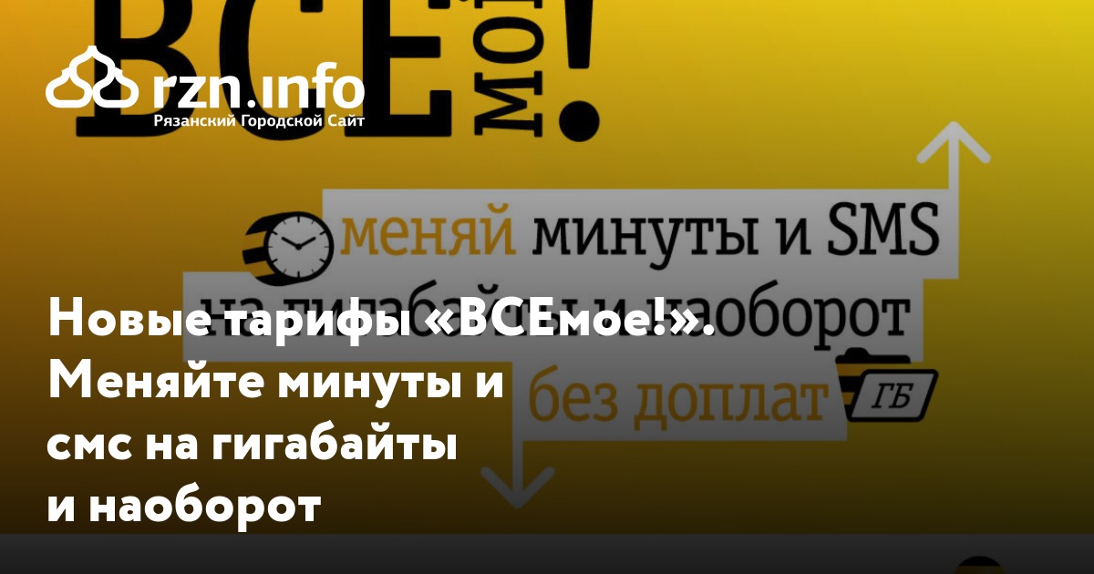 ПАО «ВымпелКом» (бренд «Билайн») представил новые тарифы «ВСЕмое!», в которых можно менять минуты и смс на гигабайты и наоборот, подстроив под свои предпочтения без изменения абонентской платы.