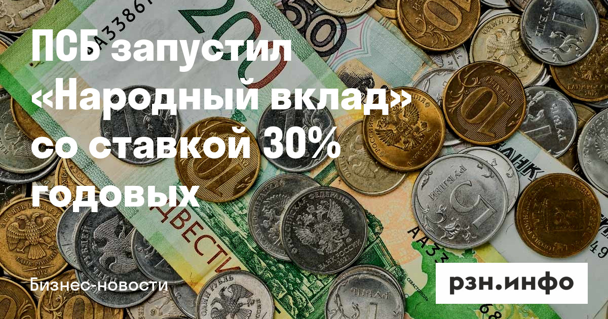 25 ноября 2024. ПСБ предложил розничным клиентам новый вклад с доходностью 30% годовых. «Народный вклад"* дает возможность разместить средства в размере 50 000 рублей и получить максимальную на банковском рынке доходность. Для держателей дебетовых карт ПСБ, зарплатных клиентов и пенсионеров, получающих пенсии на карту ПСБ, — доступен „Народный вклад плюс"**, где клиенты могут разместить средства от 10 000 до 100 000 рублей.