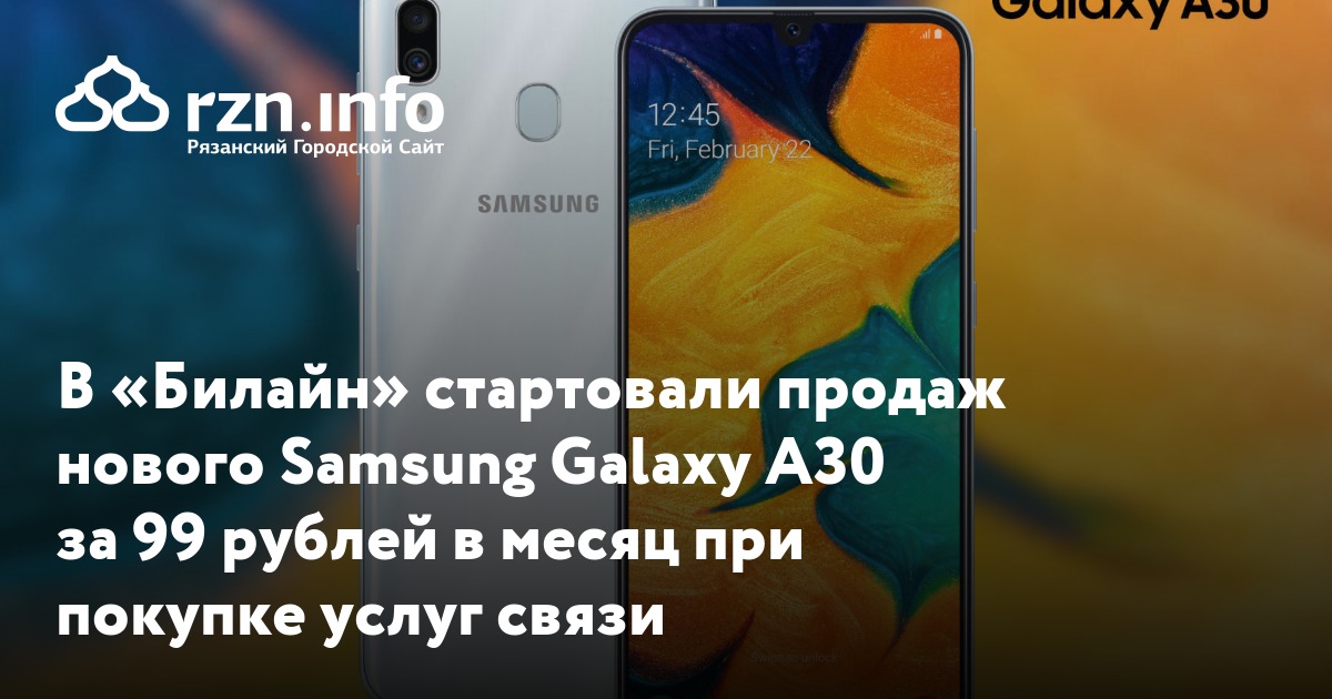 «Билайн» представляет возможность приобрести смартфоны Samsung Galaxy А30 в кредит без переплаты в комплекте с услугами связи по рекордно низкой цене — всего за 99 рублей в месяц.