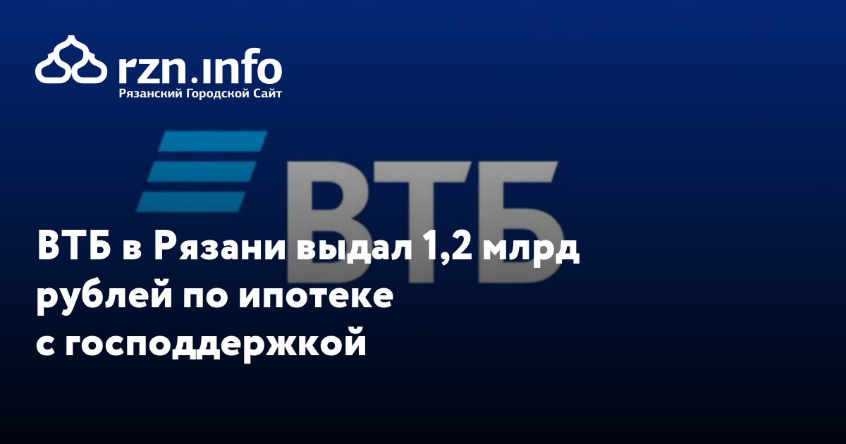 ВТБ в Рязани выдал 1,2 млрд рублей по ипотеке с господдержкой