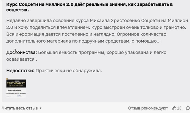 Ради справедливости мы проверили не только сами отзывы на честность, но и профили их авторов, чтобы исключить из своего анализа фейковые мнения. А теперь проанализируем отзывы об онлайн-академии Михаила Христосенко и выделим плюсы обучения под его наставничеством.