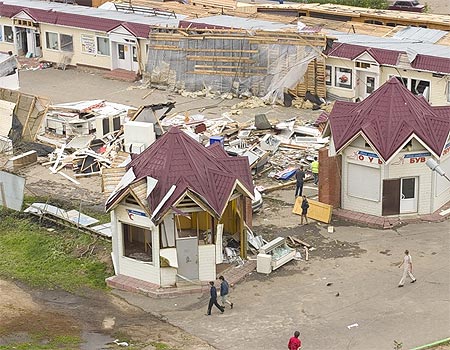 Пользователь bukvalno опубликовал в своём блоге фотографии последствий торнадо (смерч), который неожиданно для средней полосы образовался в ЦФО и нанёс разрушения в Краснозаводске.