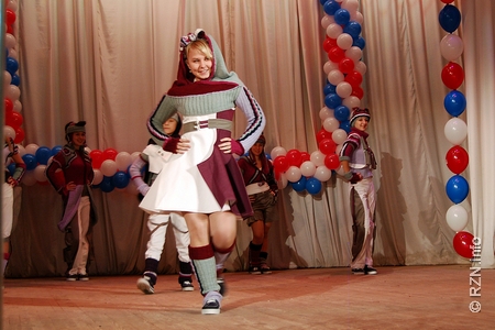 Участники театра моды «Жар-птица» центра детского творчества «Приокский» представили сразу две коллекции – «Наша версия» и «В тридевятом царстве». Модели первой коллекции выполнены из джинсовой ткани и дополнены трикотажем ручной работы, модели второй созданы по народным мотивам, с использованием узелкового батика. Руководитель театра моды «Жар-птица» Любовь Кабанова рассказал собравшимся, что театр существует уже 15 лет, его воспитанники сами отшивают коллекции «прет-а-порте» и с удовольствием носят их.