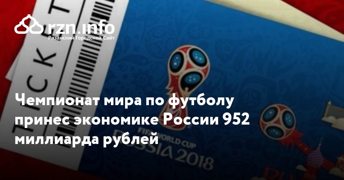 Чемпионат мира по футболу принес экономике России 952 миллиарда рублей (около 1% годового ВВП). Об этом со ссылкой на исследования оргкомитета турнира во вторник, 16 октября, передает РИА «».