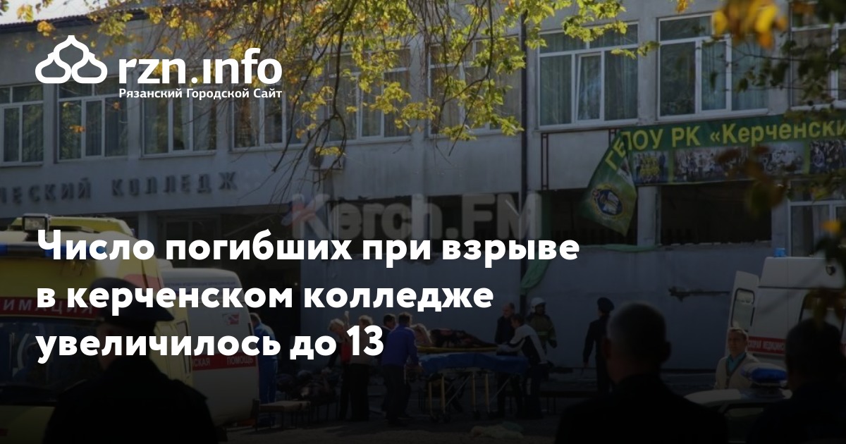 Число погибших при взрыве в керченском колледже увеличилось до 13. Об этом передает «Медуза».