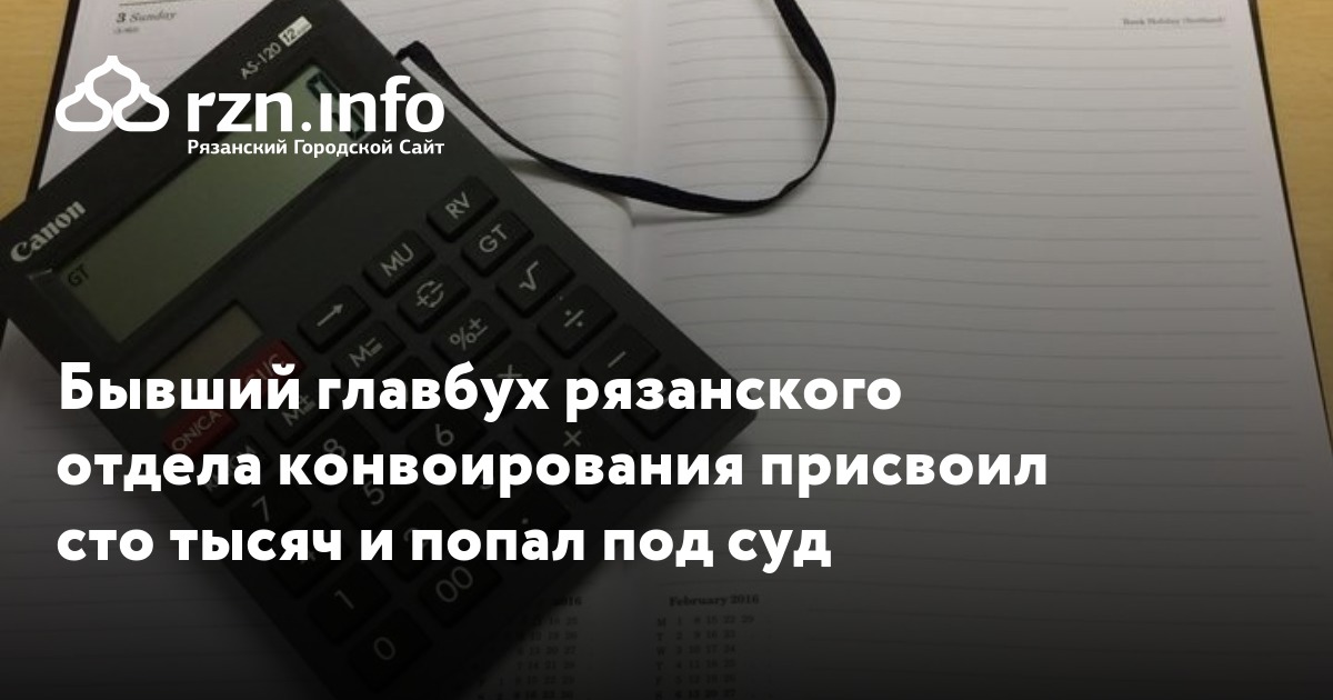 Бывший главбух рязанского отдела конвоирования присвоил сто тысяч и попал под суд