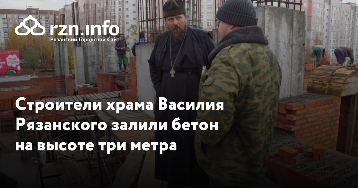 Строители храма Василия Рязанского залили бетон на высоте три метра. Об этом сайт епархии.