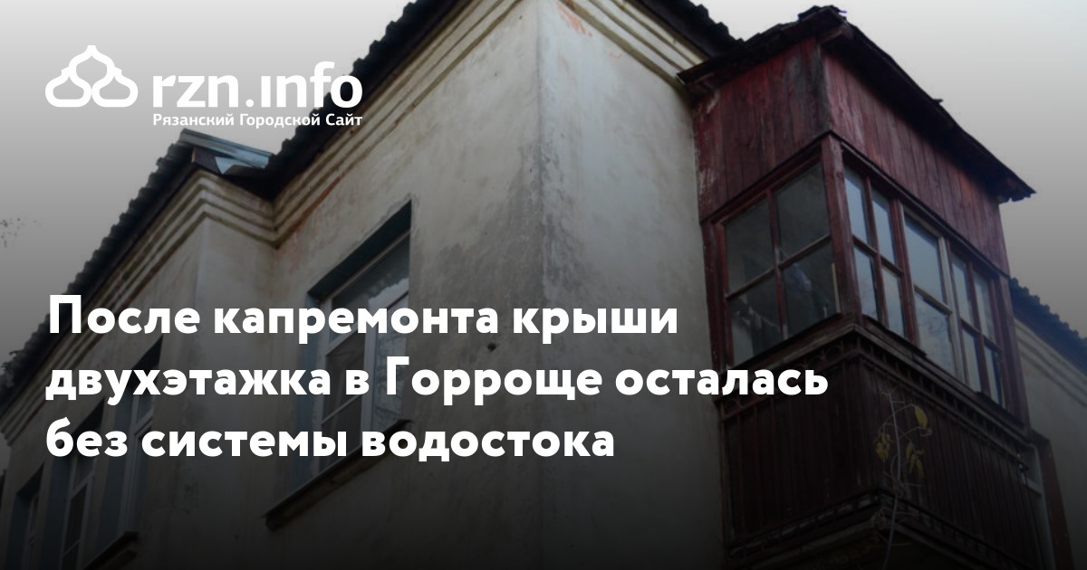 В Рязани после капремонта крыши двухэтажка в Горроще осталась без системы водостока. Устройство свесов, либо организацию водоотведения ливневых вод не включили в перечень работ «по «технической ошибке». Об этом редакции RZN.info сообщили в региональном фонде капитального ремонта.
