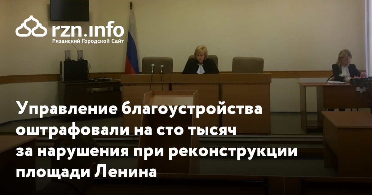 Управление благоустройства администрации Рязани оштрафовали на сто тысяч рублей за нарушения при реконструкции площади Ленина. Такое решение вынес Октябрьский районный суд во вторник, 30 октября.
