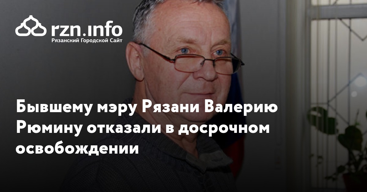 Бывшему мэру Рязани Валерию Рюмину отказали в условно-досрочном освобождении. Об этом сообщил сайт Скопинского районного суда.