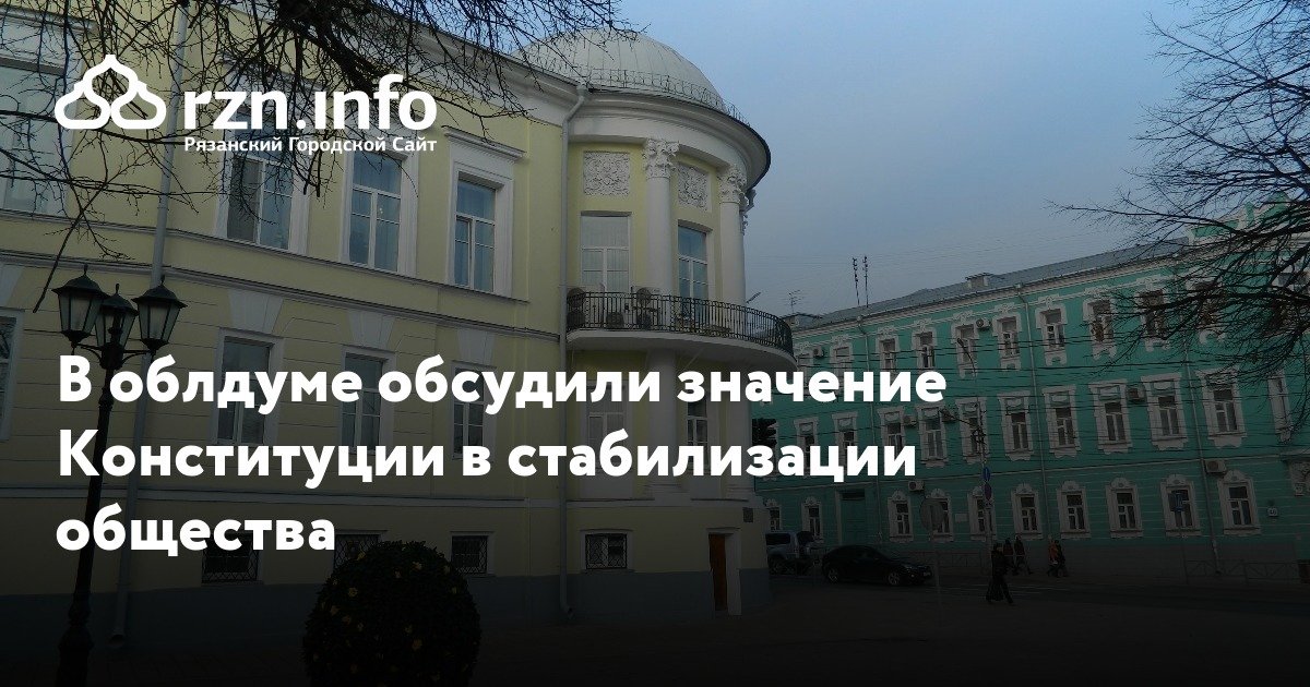 В четверг, 22 ноября, в Рязанской облдуме прошел круглый стол на тему «Конституция России как фундамент стабильности общества». В обсуждении поучаствовали заместитель председателя областной Думы Михаил Кривцов, депутаты регионального парламента, секретарь Общественной палаты Рязанской области Наталья Гришина, региональный уполномоченный по правам человека Наталья Епихина, представители научного сообщества, члены Молодежного парламента при Рязанской областной Думе, студенты профильных вузов.