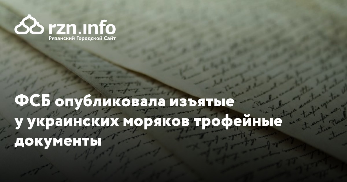 ФСБ опубликовала трофейные документы, изъятые у задержанных украинских моряков после инцидента в Керченском проливе, передает РИА «Новости».