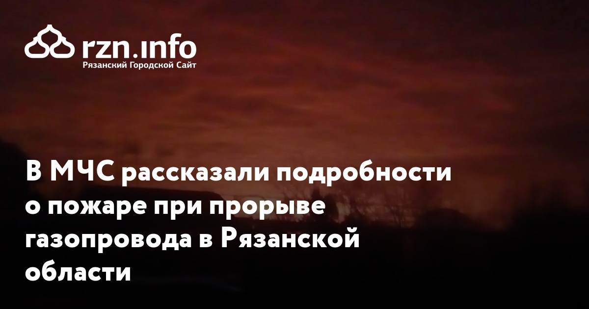 В МЧС рассказали подробности о пожаре при прорыве газопровода в Рязанской области. Сообщение опубликовали на регионального ведомства.