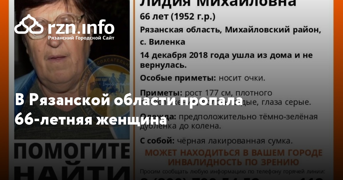 В Рязанской области пропала 66-летняя женщина. Об этом сообщили в группе поисково-спасательного отряда «» «ВКонтакте».