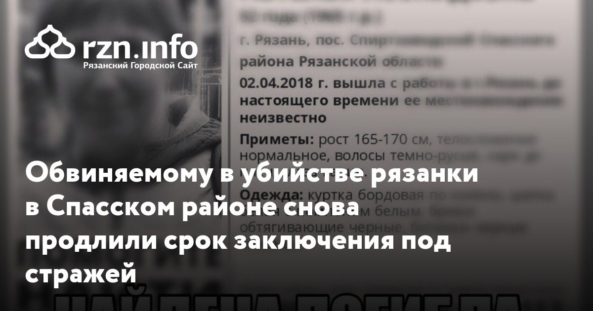 Обвиняемому в убийстве рязанки в Спасском районе продлили срок заключения под стражей на один месяц. Об этом сообщил райсуда.