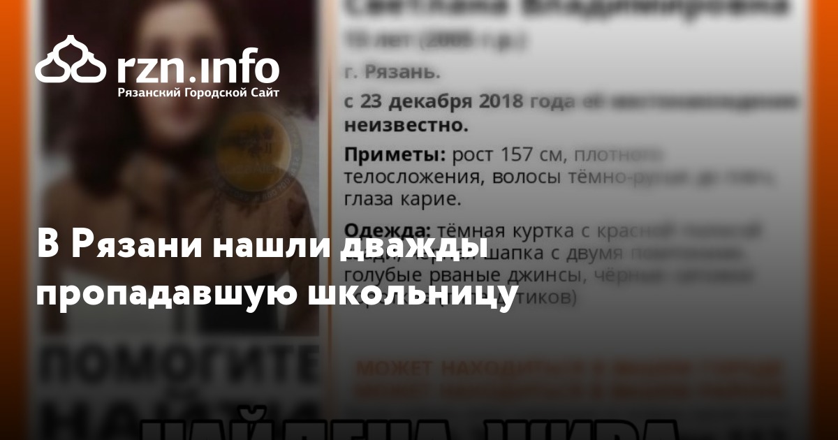 В Рязани нашли 13-летнюю Светлану Хохлачеву, которая пропадала уже во второй раз. Школьница жива, сообщили в группе волонтерского отряда «» 29 декабря.